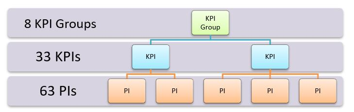 Finally, on the highest level the KPIs are combined into KPI groups for better categorization and visualization purposes. No form of calculation or aggregation is happening on this level.